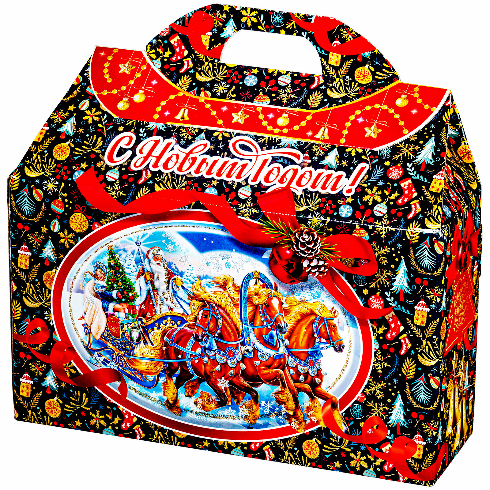 Представляем вам Новогодний Сладкий Подарок в форме стильного чемоданчика! Этот уникальный набор подходит как для подарков близким, так и для корпоративов, создавая атмосферу волшебства и тепла в эти зимние дни!Яркая упаковка сразу привлечет внимание своим оформлением: темно синий фон здесь идеально сочетается с контрастными элементами. Наличие удобной прорезной ручки делает подарок очень удобным для транспортировки.  Внутри набора находятся разнообразные вкусные сладости, которые станут украшением любого праздничного стола. Помимо сладкого наполнения, набор может порадовать небольшим памятным сувениром в виде символа наступающего года.