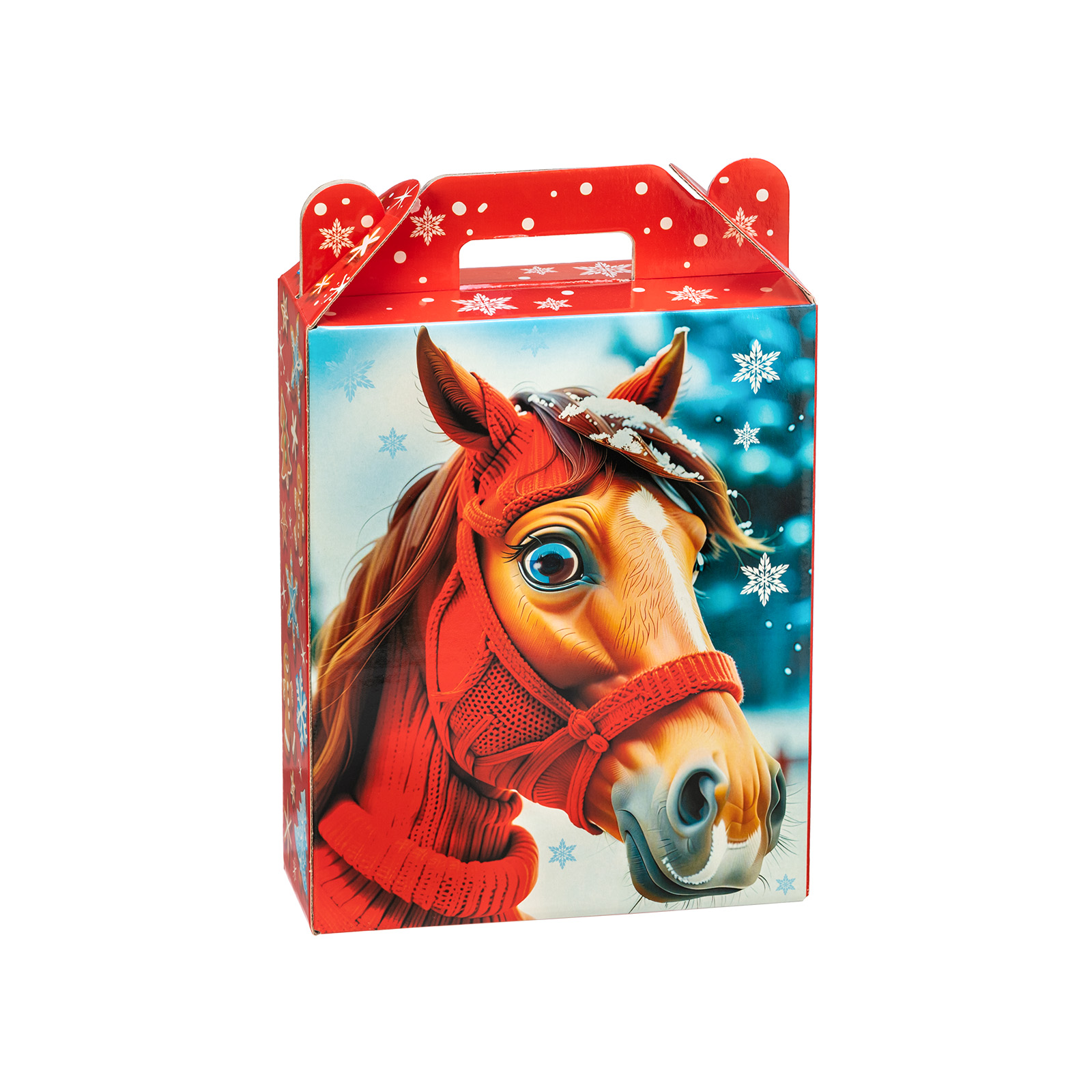 Интересный вариант новогоднего подарка – «Фаворит». Он представлен в разделе Картон. Отлично подойдет на подарок в 2026 году с символом Лошадь. Внутри такого презента находится кондитерский набор весом 700 граммов.