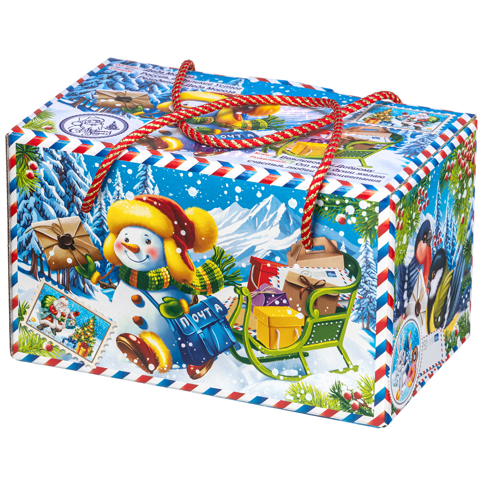 Интересный вариант новогоднего подарка – « Почтальон Снежкин Бюджет». Он представлен в разделе Картон. Отлично подойдет на подарок в 2026 году с символом Лошадь. Внутри такого презента находится кондитерский набор весом 1000 граммов.