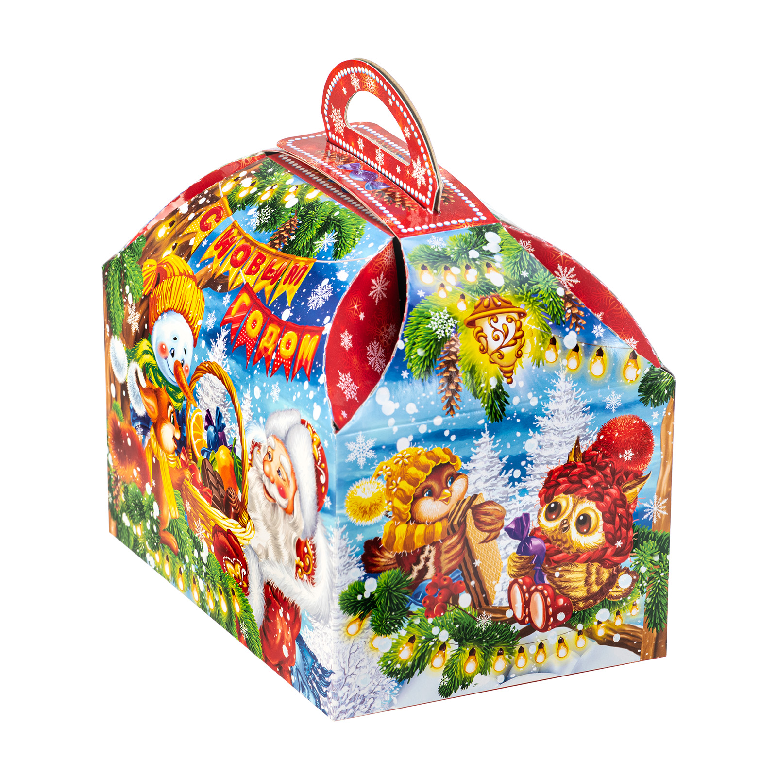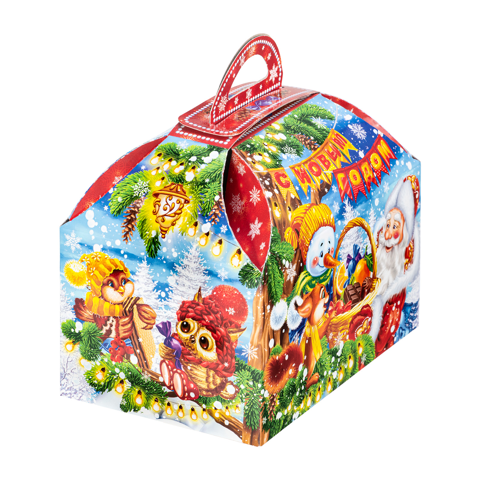Подарите своим родным и близким безграничную радость вместе с новогодним сладким подарком “Сундук лакомств”. Этот подарочный набор представляет собой небольшую картонную коробочку в форме сундука с удобной ручкой сверху. На упаковке нанесен очень яркий привлекательный рисунок, на котором Дед Мороз и его друзья обмениваются подарками и веселыми улыбками. В состав подарка входит 900 грамм вкусных и разнообразных лакомств от ведущих кондитерских предприятий, а также небольшой памятный сувенир в виде символа наступающего года.