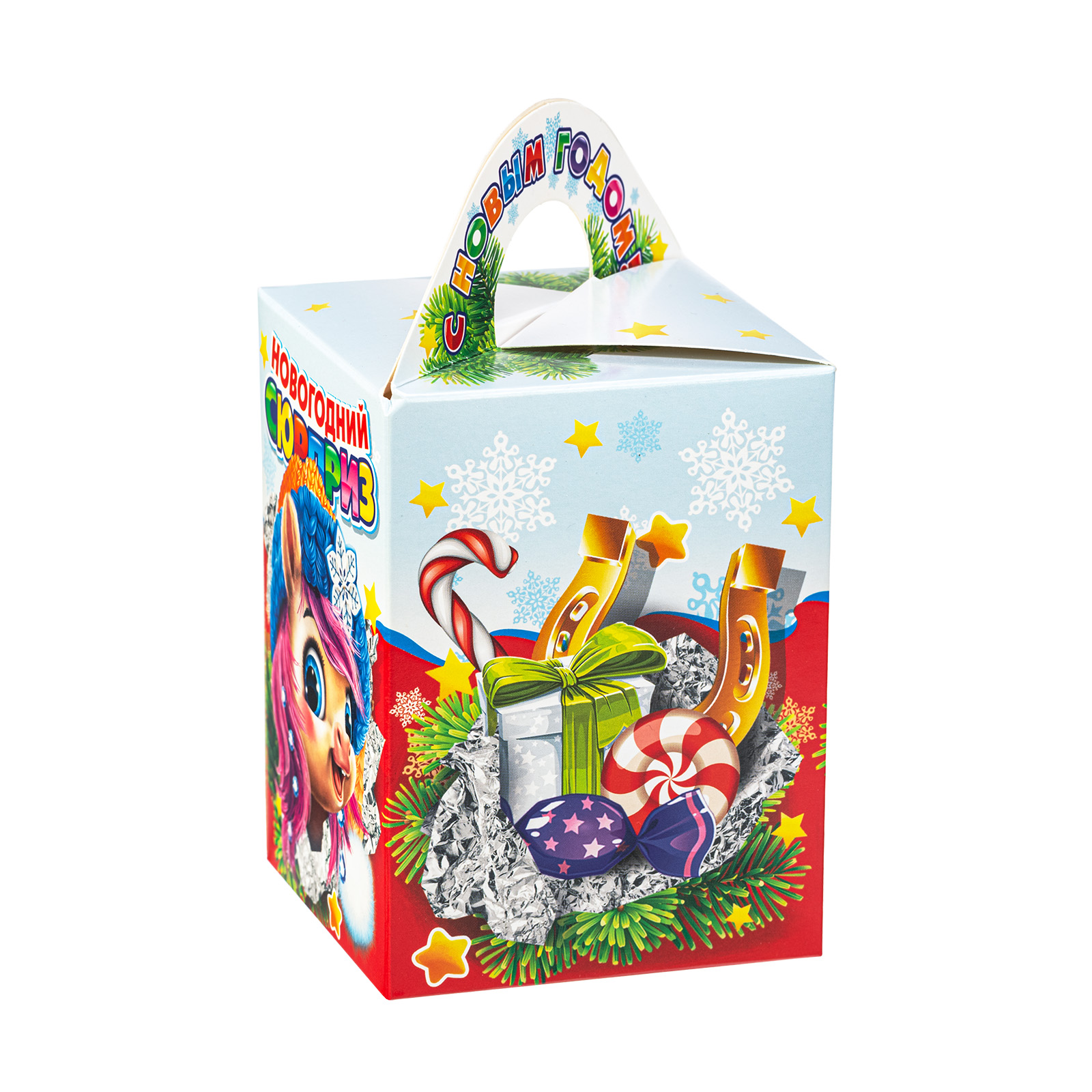 Интересный вариант новогоднего подарка – «Вкусный привет (Полезный состав)». Он представлен в разделе Картон. Отлично подойдет на подарок в 2026 году с символом Лошадь. Внутри такого презента находится кондитерский набор весом 300 граммов.